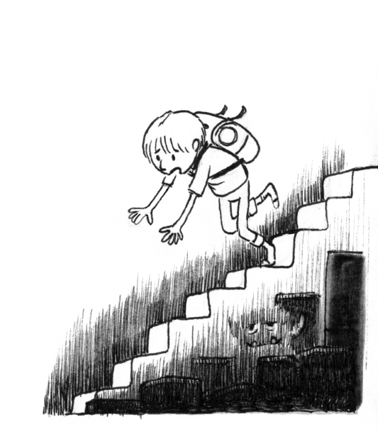 Fred stolpert die Treppe hinunter